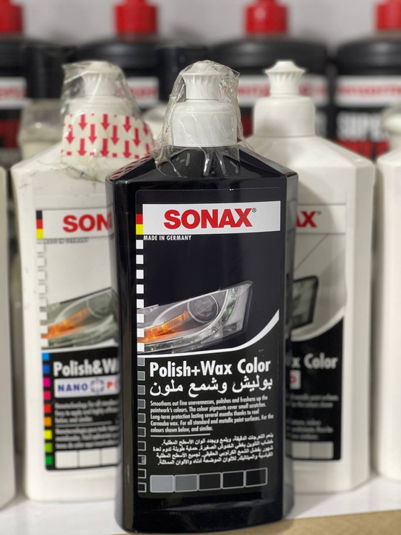 پولیش و واکس رنگی طوسی سوناکس یک پوليش رنگی با واکس کارنابای طبيعی، برای انواع رنگ های طوسی استاندارد و متاليک است. رنگدانه های موجود در پولیش و واکس رنگی طوسی سوناکس خط و خش های ريز را می پوشاند و باعث محافظت بلند مدت رنگ شده و به آن درخشش و براقيت فوق العاده ای می دهد.