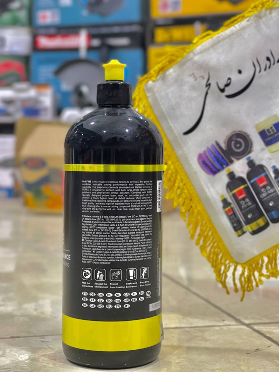 مایع پولیش نرم دوآل اکشن 1 لیتری روپس مدل Rupes High Performance Fine Polishing Compound DA Fine 9.DAFine نتیجه آزمایشات گسترده ای است که توسط شرکت روپس انجام شده است تا یک مایع پولیش نرم که ترکیبی از عملکرد لایه برداری همراه با شاین قابل توجه و چشم گیر است، ایجاد گردد. فرمول اختصاصی و منحصر به فرد این محصول روپس برای انجام پولیش کاری با دستگاه پولیش اوربیتال و دوآل اکشن بهینه شده است. مایع پولیش نرم دوآل اکشن 1 لیتری روپس با پد پولیش نرم و مایکروفایبر تجربه کاملا بی نقصی به دیتیلینگ کاران عزیز هدیه می دهد و دومین مرحله از مراحل پولیش کاری برند روپس می باشد که پس از لایه برداری با پولیش زبر، این محصول برای ایجاد درخشش فوق العاده توصیه می شود.