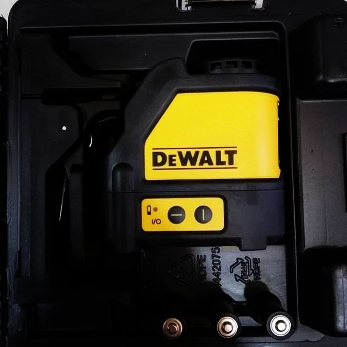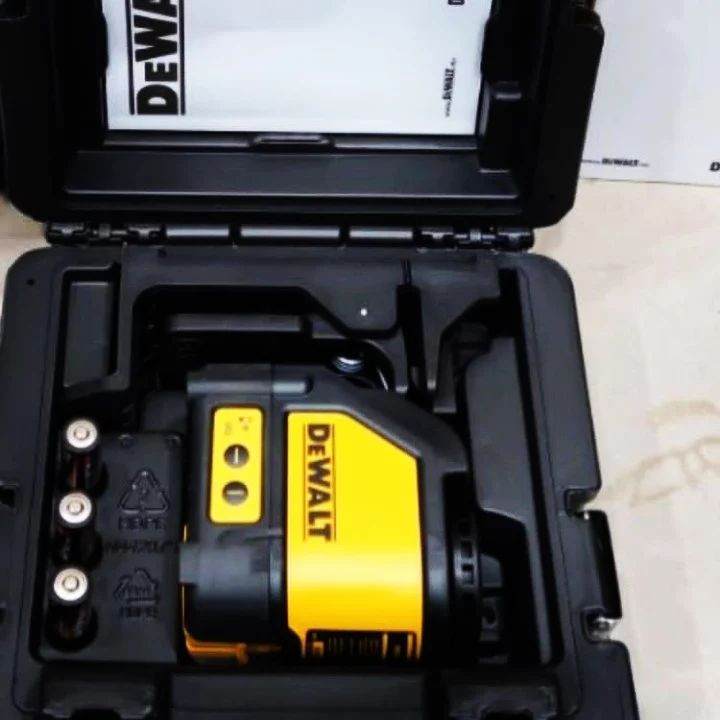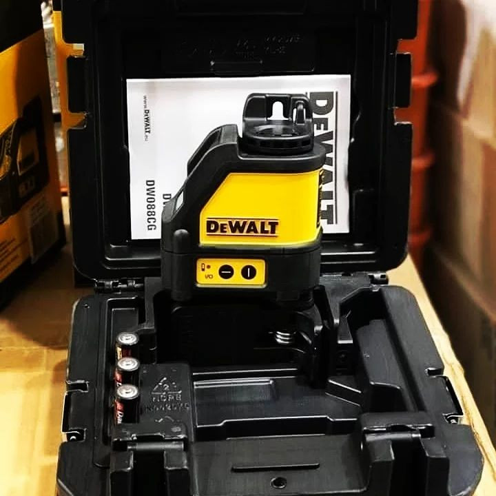 تراز لیزری دیوالت تیپ دل DW088 K_B5 برق DS باطری 4.5 ولت دارای 3 عدد باتری نیم قلمی دو خط نور قرمز برد تراز 20 متر در روز و 50 متر در شب