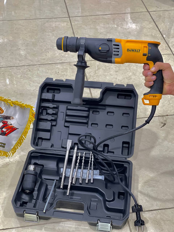 ⬅️شرکت دیوالت یکی از شرکت های معتبر و با کیفیت دنیا در عرصه تولید و طراحی ابزارهای صنعتی فعالیت دارد، به دلیل بالا بودن کیفیت محصولات این شرکت در چندین کشور نمایندگی و تولید ابزار تحت لیسانس و شرکتی دارد، از جمله این شرکت ها در کشور چین نیز محصولات های کپی درجه 1 محصولات دیوالت را تولید میکنند، یکی از محصولات با کیفیت و کارایی این شرکت تولید دریل بتن کن سه کاره می باشد، دریل سه کاره از لحاظ قدرت و توان در مقایسه با دریل های برقی و چکشی قویتر می باشد، از دریل های سه کاره به منظور انجام کارهای سوراخکاری و یا تخریب مصالح بتن، سیمان، گچ، چوب استفاده می شود، دریل سه کاره دیوالت مدل D25144 دارای توان 900 وات می باشد. سرعت گردش آزاد این محصول 1450 دور در دقیقه را داراست همچنین قابلیت 5350 ضربه چکش در دقیقه را دارد،دریل بتن کن سه کاره دیوالت سه کاره می باشد به این معنی که حالت دریل و چکش و دریل و چکش را دارا می باشد، این محصول قابلیت کنترل سرعت را نیز دارد که این ویژگی باعث دقت بیشتر در انجام کار میگردد، از ویژگی دیگر این محصول قابلیت چرخش چپ گرد و راست را نیز دارد که این ویژگی موجب شده تا هر دو نوع مته چپ گرد و راست گرد را بر روی دستگاه نصب کرد، سه نظام این دریل سه کاره دیوالت مدل D25144از نوع چهار شیار بوده و حداکثر قطر سوراخکاری در فلز 13 میلیمتر و در چوب 33 میلیمتر و سایر سطوح 28 میلیمتر است، همچنین این محصول دارای دسته کمکی 360 درجه می باشد تا کنترل کامل را بر روی دستگاه داشته باشید. وزن مناسب، کارایی و قدرت عالی این محصول موجب گردیده تا کارهای خانگی و صنعتی خود را به راحتی انجام دهید، به همراه این محصول 5 عدد مته و قلم و سه نظام اضافی تعبیه شده همچنین دارای جعبه محکم و مخصوص می باشد. اگر قصد خرید دریل بتن کن سه کاره دارید پیشنهاد ما این محصول می باشد