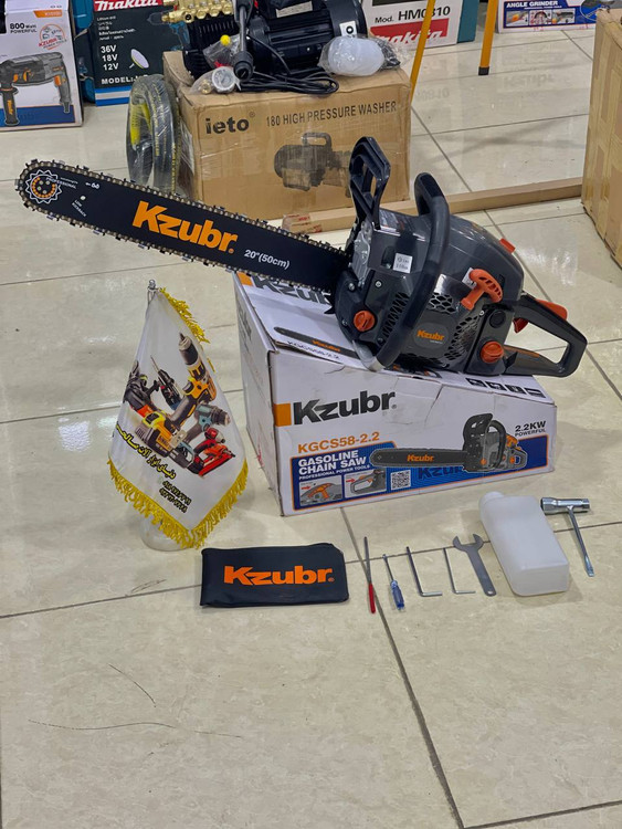 اره بنزینی زوبر مدل KGCS 25-2.2 به عنوان یکی از قدرتمندترین ابزارهای برش در بازار فروش به شمار میآید به طوری که به عنوان کاربردی ترین ابزار در زمینه باغبانی و کشاورزی به شمار میآید. اره بنزینی زوبر پیشنهادی بسیار مناسب برای عزیزانی است که مشغول کار باغداری هستند و همچنین همزمان به دنبال سرعت و کیفیت بالا در کارهای خود هستند. کمپانی زوبر در دیزاین محصولات خود تنها یک بعد را در نظر نمی گیرد بلکه تمام جنبه های یک محصول را در نظر می گیرد و سعی می کنند محصولی را وارد بازار فروش کنند که بتواند پاسخ گوی نیاز کاربران باشد. از دیگر محصولات پرچم دارد کمپانی زوبر اره بنزینی زوبر مدل KGCS 25-2.2 است که مجهز به موتور پر قدرت با توان ۲.۵ کیلو وات است و همچنین با سرعت ۱۱۵۰۰ دور در دقیقه بهترین عملکرد را برای شما به ارمغان می آورد. اره بنزینی زوبر دارای موتور دو زمانه است و مجهز به دو خروجی اکسوز است. اره بنزینی زوبر مدل KGCS 25-2.2 دارای طول عمر بالا و راندمان کاری بالا است و همچنین از نظر مصرف سوخت بسیار مناسب است. اره بنزینی زوبر دارای دو مخزن جداگانه است که یکی برای روغن و دیگری برای سوخت مورد استفاده قرار میگیرد و همزمان همراه آن یک ظرف تنظیم روغن نسبت به سوخت وجود دارد که باعث میشود کارهای خود را با کارایی بالا انجام دهید. طراحی شیک و در عین حال ساده اره بنزینی زوبر این امکان را برای کاربران به وجود آورده است که به آسانی طرز کار با این اره را یاد بگیرید و در مدت زمان کمی تمام کارهای خود را به اتمام برسانید. دیزاین اره بنزینی زوبر مدل KGCS 25-2.2 از نظر مکانیسمی جوری طراحی شده است که از زنجیر مقاوم به طول ۵۰ سانتی متر ساخته شده است و همچنین دارای قفل زنجیر است که باعث می شود هنگام کار هیچگونه آسیبی به شما وارد نشود. دسته ی ارگونومیک اره بنزینی به گونه ای است که بسیار راحت است و همراه آن دسته ی کمکی وجود دارد که باعث می شود به راحتی بتوانید کنترل اره بنزینی را در دست بگیرید.