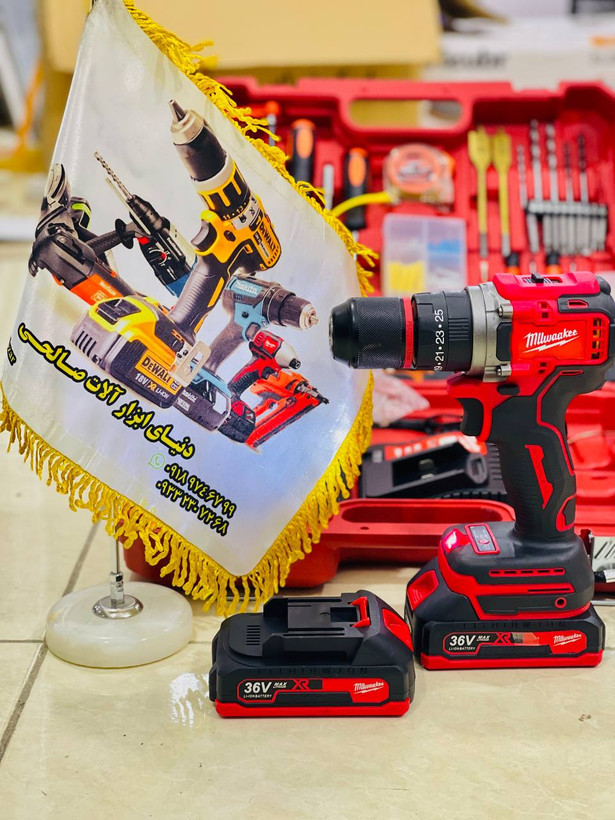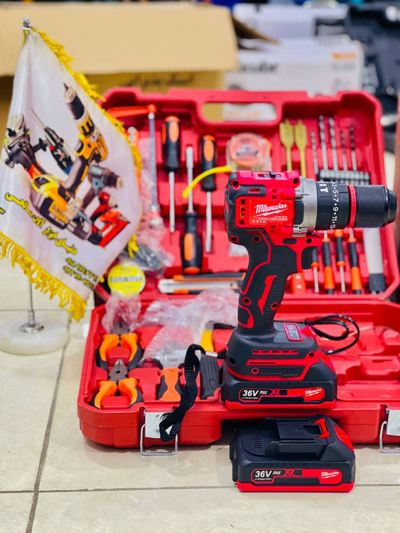 دریل شارژی فول لوازم xv36ولت برند میلواکی موتور براشلس