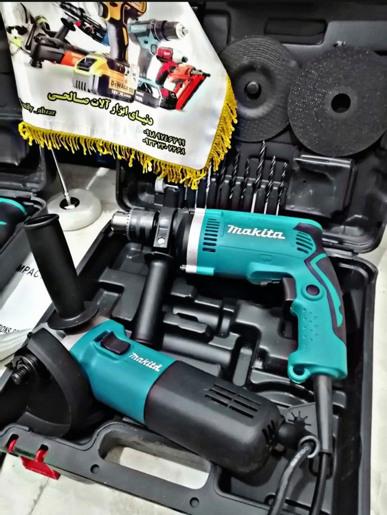 بی شک کسانی که در مشاغلی چون آهنگری، کارهای ساختمانی و ... هستند، نیاز به خرید دریل برقی و دستگاه سنگ فرز دارند، از این رو خرید پک دوقلو دریل اچ پی 1630 « HP1630 » و فرز ماکیتا 9555 اچ ان « 9553HN » گزینه ای مناسب و ایده آل برای آن ها است. این مجموعه بسیار با کیفیت و کارآمد تولید و طراحی شده اند تا کار را برای شما بسیار ساده تر کنند. از خوبی های این مجموعه می توان به حضور لوازم جانبی مختلف و همچنین جعبه پلاستیکی جهت قرار گیری اقلام اشاره کرد. دریل ماکیتا 1630 با توان 710 وات، سرعت 3200 دور و نرخ ضربه 4800 گزینه ای ایده آل برای سوراخکاری مصالح مختلف است. این دریل بسیار خوش دسته طراحی شده که در حین انجام کار اصلا شما را اذیت نخواهد کرد. از خوبی های این دریل می توان به سیستم چرخش راست گرد و چپ گرد، قفل کلید و همچنین دسته کمکی اشاره کرد. سه نظام دریل چکشی ماکیتا از نوع آچار خور است.