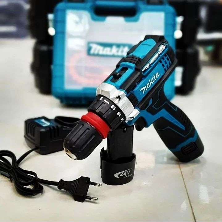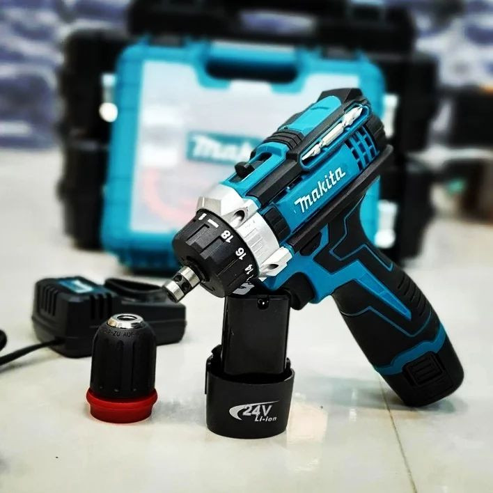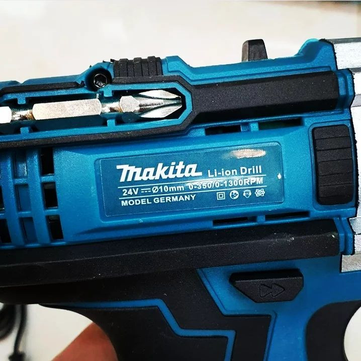 دریل شارژی ماکیتاmakita 24V دوکاره پیچ بند تقه ایی و دریل سرنظام قابلیت جدا شدن گیربکس دوحالته 1300 دور 350 بار چکش ده میل