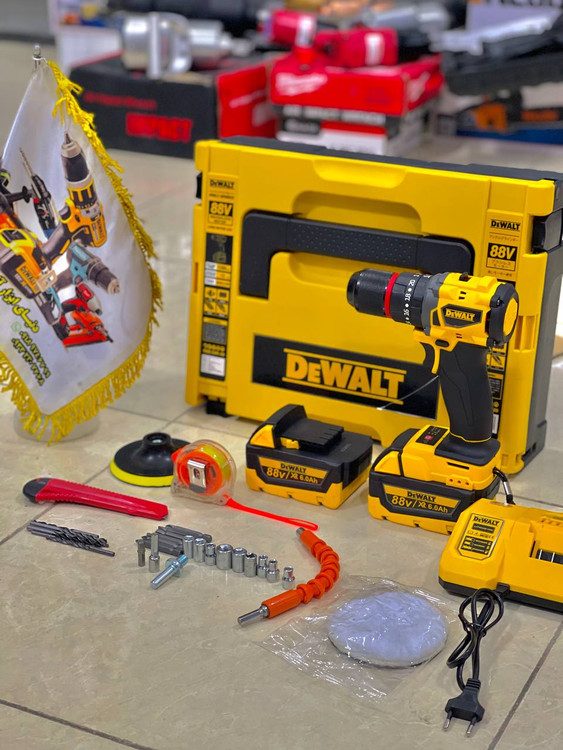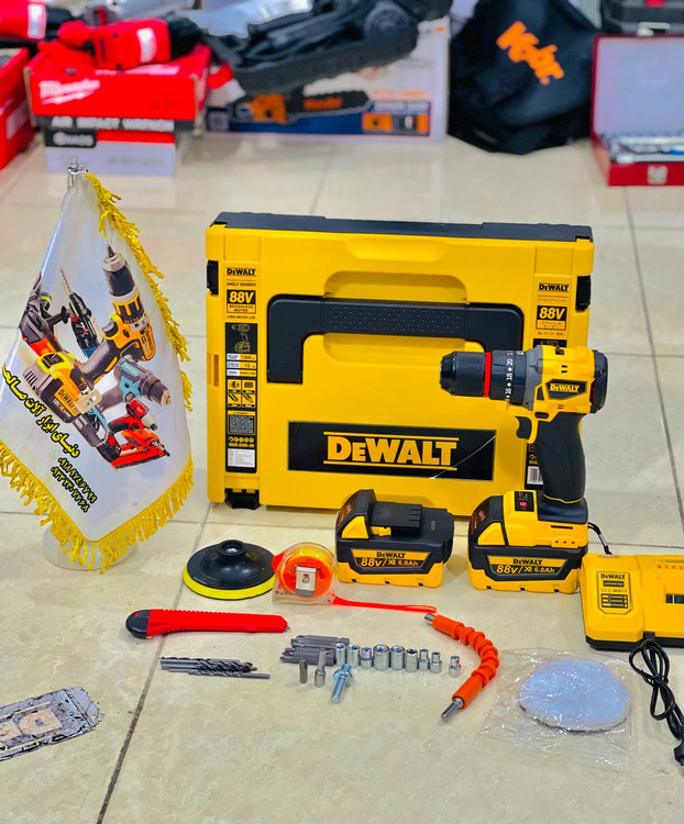 دریل شارژی 88 ولت پولیش دار دیوالت سه نظام فلزی موتور براشلس مدل DEWALT MOD.DXR-09