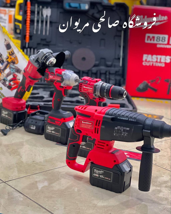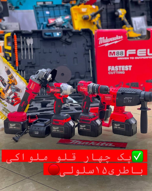 پک چهار قلو صنعتی میلواکی 088ولت موتور براشلس مدل m88 باتری15سلولی