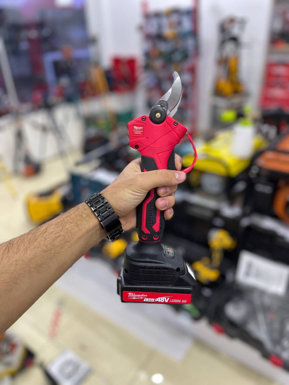 قیچی شارژی میلواکی مدل۴۸ولت موتور براشلس 2.0AH