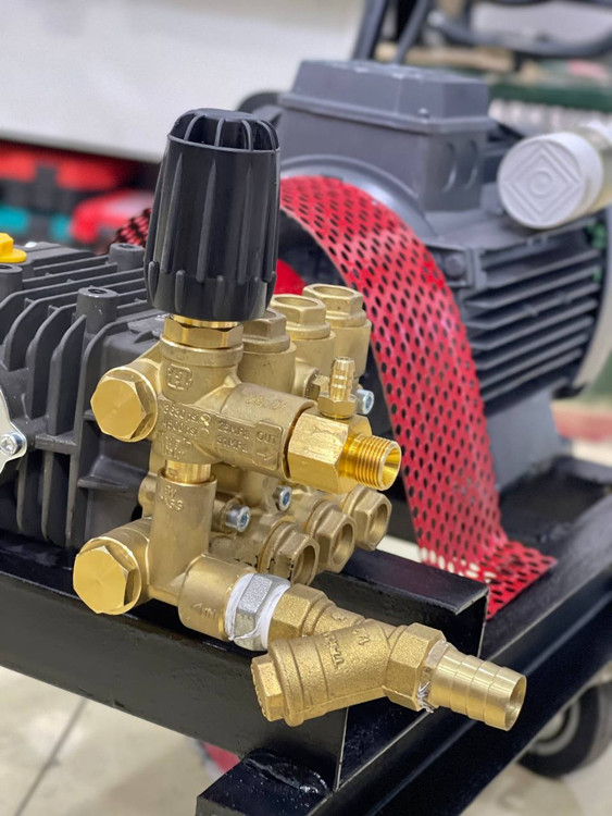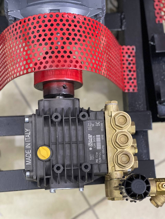 پمپ کارواش COMETایتالیا مدل LE3025 با فشار 172 بار و دبی خروجی 11.2لیتر در دقیقه و قدرت 3 اسب بخار و دور موتور 1450 دور در دقیقه به همراه شیر فشارشکن اصلی شرکتی اورجینال یا شیر بای پس و کوپله شده با الکتروموتور موتوژن تبریز با توان 2.2 کیلو وات 3 اسب بخار می باشد.