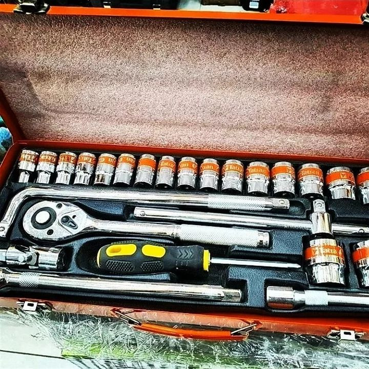 جعبه بکس تاتیانTatian فشار قوی سایز 1/2 25 پارچه جنس الیاژ کروم سایز 32 همراه دسته بکس و اچار بکس با نازل ترین در بهترین هارو از ما بخواهید سیاست ما سود کمتر و فروش بیشتر فروش حضوری و انلاین ارسال از طریق پست