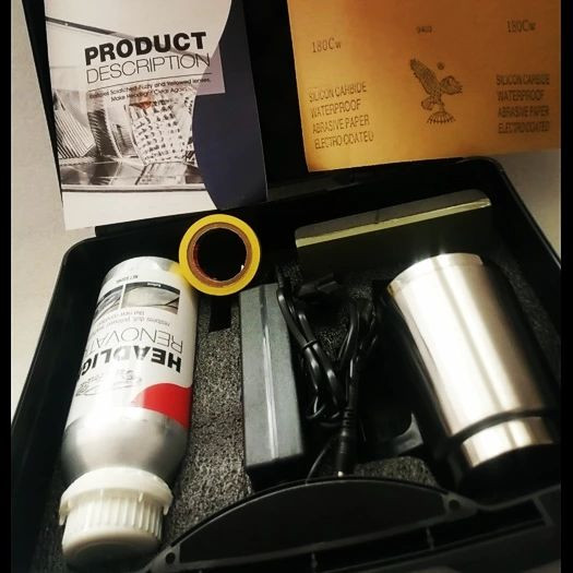 دستگاه شفاف سازی چراغ خودرو مدل: HEADLIGHT RENOVATION KIT مواد مایع شفا سازی نانو کاملا اورجینال جعبه شامل: مایع ترمیم یک بطری (۸۰۰ گرم ، ۶۰۰ میلی لیتر). چینی ۲) دستگاه تمیز کننده ۳) آداپتور برق مواد داخل دستگاه، برای شفاف کردن حدود ۵۰ تا ۷۰ چراغ خودرو کافیست عملیات شفاف سازی چراغ باید بعد از سمباده کاری انجام شود. پس از سمباده کاری چراغ، فقط کافیه مواد رو داخل دستگاه بریزید و بعد از گرم شدن، روی چراغ بکشید،. زردی و نواحی مات و خراش های ملایم چراغ را برطرف می کند. 1 لیتر مواد باسازی حداقل 40 تا 60 دستگاه خودرو را بازسازی میکند استفاده از نکات مربوط به گرم کردن فنجان 1. هنگام افزودن مایع ، لطفا فنجان را تا نصف پر کنید پس از اتمام کار ، چند دقیقه برای خنک شدن بگذارید و مایع را دوباره در بطری مایع بازسازی کنید. (از آنجا که فنجان نه تنها در قسمت پایین گرم می شود ، بلکه در قسمت کل شارژ فنجان گرم می شود ، اگر مایع موجود در فنجان گرم کننده کمی باشد ، احتمالاً بدون مایع گرم می شود ، که به کارکرد فنجان آسیب می رساند. 2. در حین شارژ ، لطفاً کل فرآیند را در عرض 20 دقیقه نگه دارید. در واقع هنگام انجام 2 چراغ جلو 10 دقیقه بیشتر طول نمی کشد. هنگامی که برای بازسازی چراغهای جلو بیشتر مورد نیاز است ، لطفاً هر 20 دقیقه فنجان گرمایش را خاموش کنید. نام های دیگر بخار چراغ جلو ، کیت تعمیر چراغ جلو، ترمیم چراغ جلو اتومبیل این کیت ترمیم برای درخشش و بازیابی لنزهای پلاستیکی از جمله چراغ های جلو ، چراغ های عقب ، مه و چراغ های جهت دار مناسب است. 1 عدد مایع مخصوص رفع ماتی چراغ خودرو 1 عدد دستگاه رفع ماتی چراغ خودرو 1 عدد آداپتور برق 1 عدد دسته سنباده 4 عدد سنباده (1000,1500,600,320,180) مخصوص پولیش چراغ ماشین