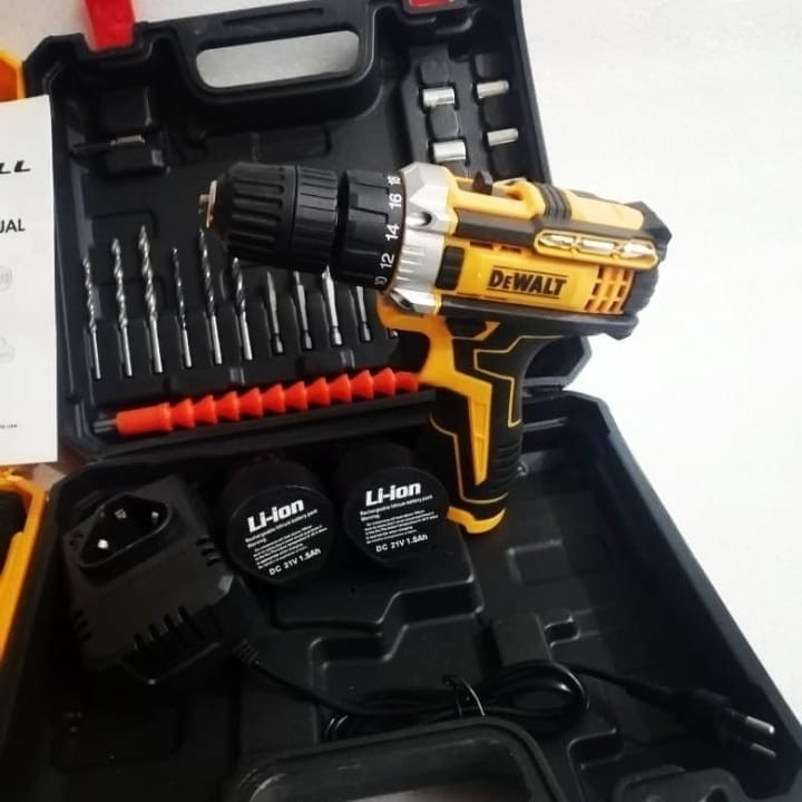 سلام و درود به همه دوستان وهمکاران عزیز درریل شارژی و پرقدرتDEWALT امریکایی21V پر قدرت اوردیم واسه صافکارهای و صنعت کاران عزیز دریل شارژی سه حالته دیوالت از سری محصولات با کیفیت و حرفه ای کمپانی دیوالت که عمکلرد عالی را از خود به جای میگذارد. خوش دست و خوش فرم،رنگ زرد،ولتاژ ،دارای جعبه محکم،گیربکس سه حالته(دریل،پیچ گوشتی و)،باتری لتیومی،دارای یک باتری یدک،بهره گیری از لامپ LED،همراه با لوازم جانبی،سه نظام 10 میلی متری،گیربکس 2 سرعته،لوازم جانبی مختلف. . این دریل شارژی که به روسیه از قطعات با کیفیت و درجه یک آمریکایی ساخته شده است. وارد کننده مستقیم و بدون واسطه با نازل ترین قیمت