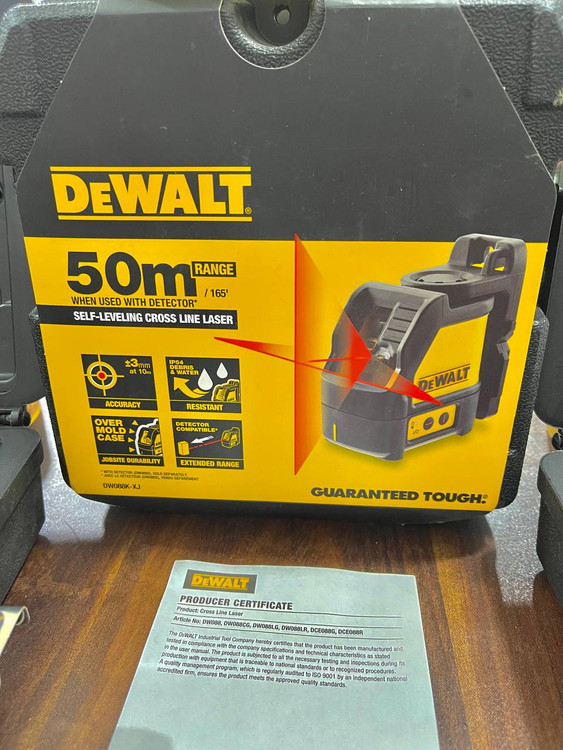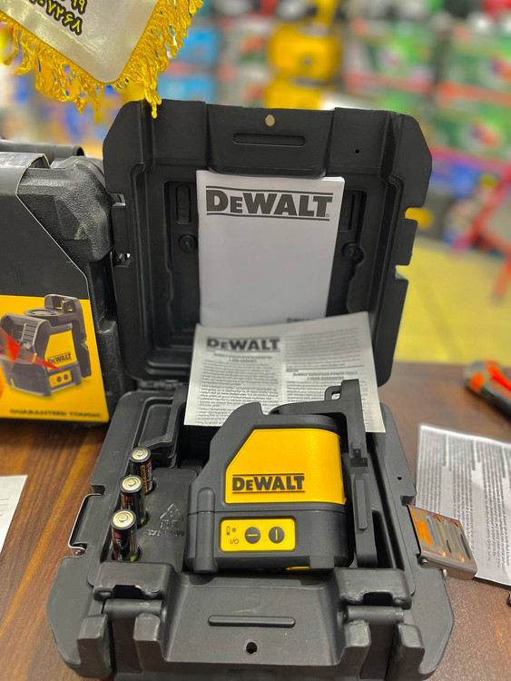 تراز لیزری دیوالت تیپ دل DW088 K_B5 برق DS باطری 4.5 ولت دارای 3 عدد نیم قلمی دو خط نور قرمز